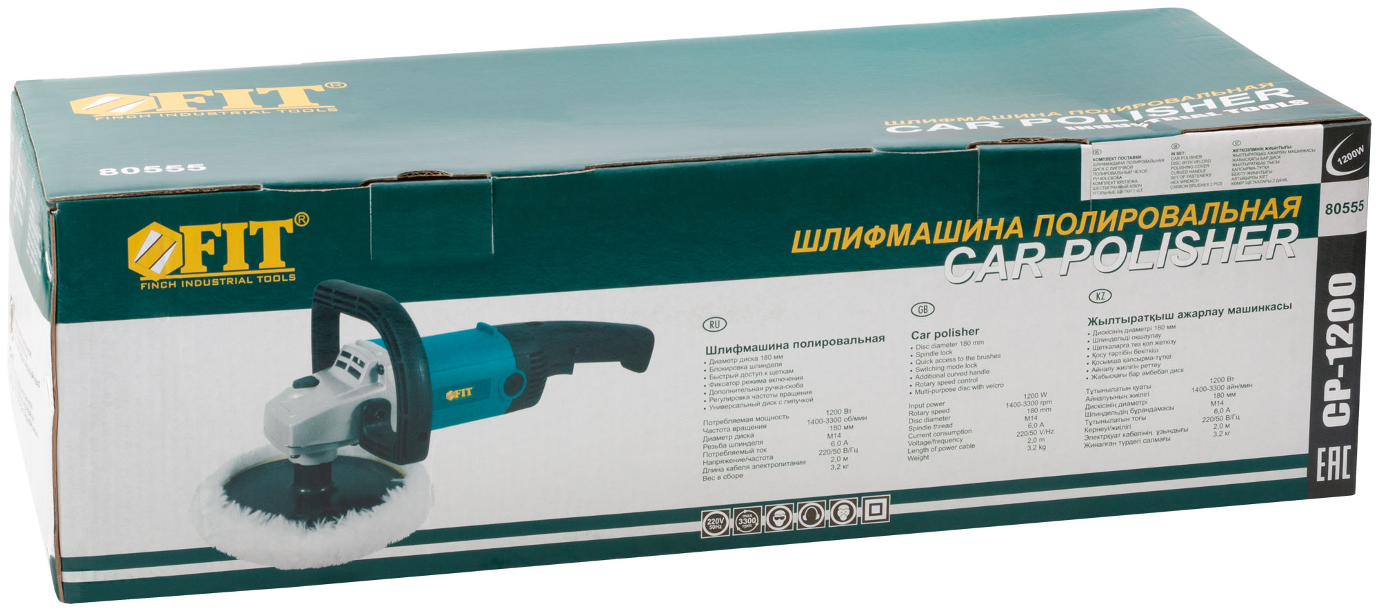 Шлифмашина полировальная 1200 Вт; 1400-3300 об/мин; 180 мм; 3,2 кг; коробка FIT FINCH INDUSTRIAL TOOLS арт. 80555 | код 788301