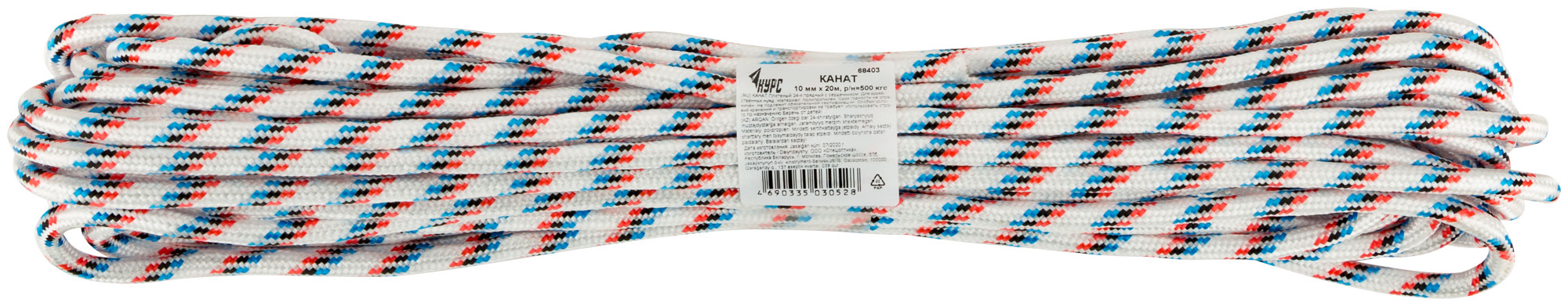 Канат полипропиленовый 24-х прядный с сердечником 10 мм х 20 м, р/н= 500 кгс КУРС арт. 68403 | код 788407