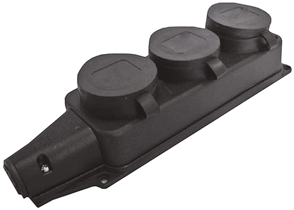 Колодка «UNIVersal» электрическая, тройная, в каучуковом корпусе, с заземлением. Соответствует ГОСТ. Имеет повышенную влагозащиту (IP44), может использоваться при отрицательной температуре окружающей среды. Напряжение в сети 220/250 В, частота тока 50 Гц, максимальная мощность 3500 Вт, номинальный ток 16 А. Материал корпуса: каучук. Упаковка: пакет с подвесом.