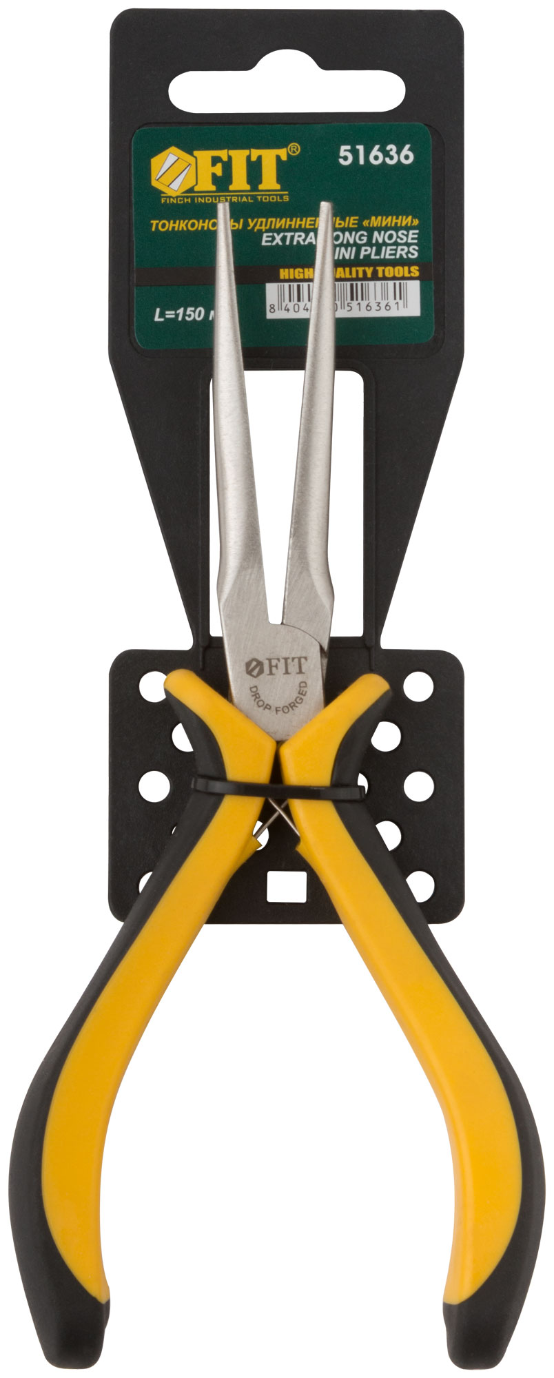 Тонконосы "мини" удлиненные Профи, никелированное покрытие, черно-желтые мягкие ручки 150 мм FIT FINCH INDUSTRIAL TOOLS арт. 51636 | код 789232