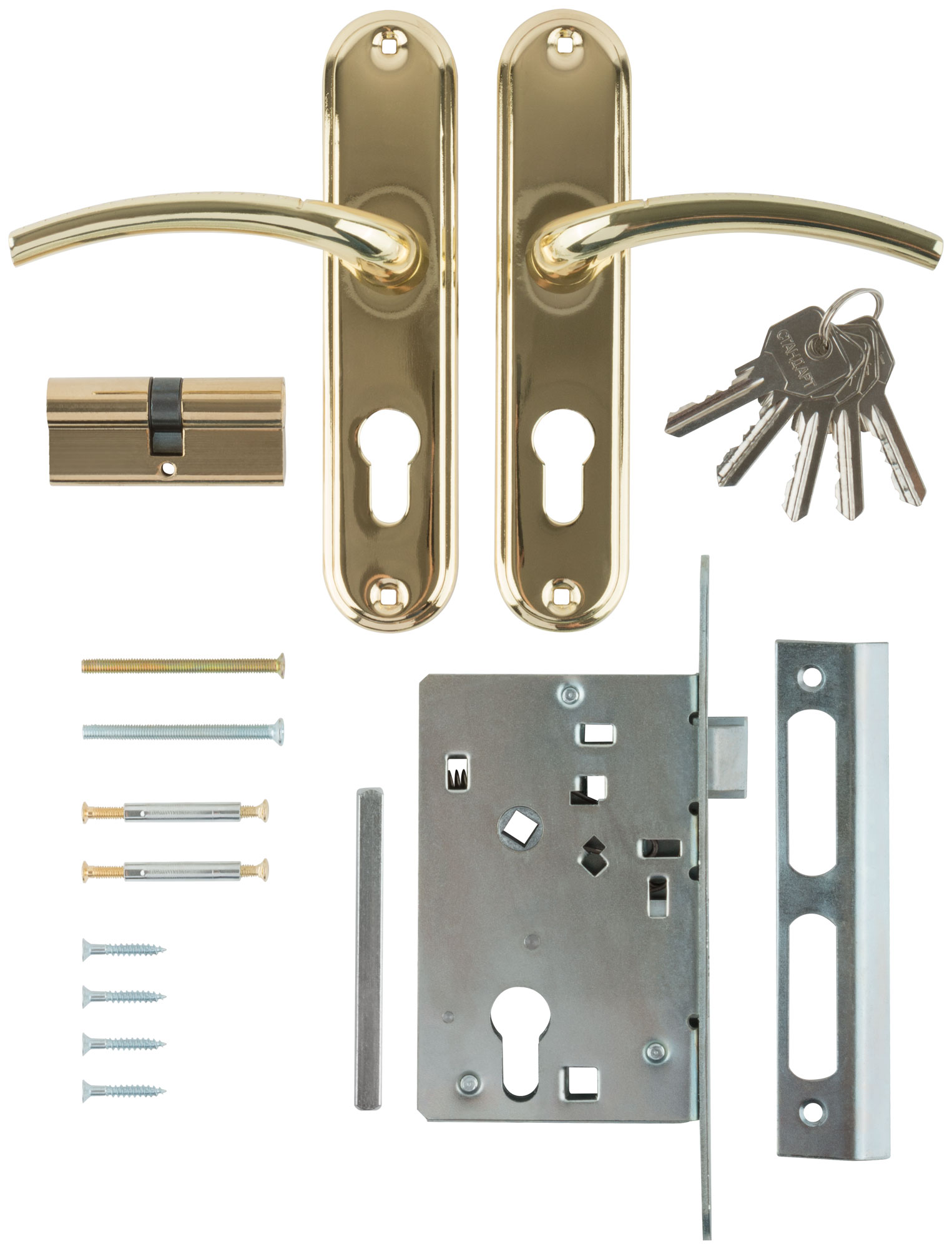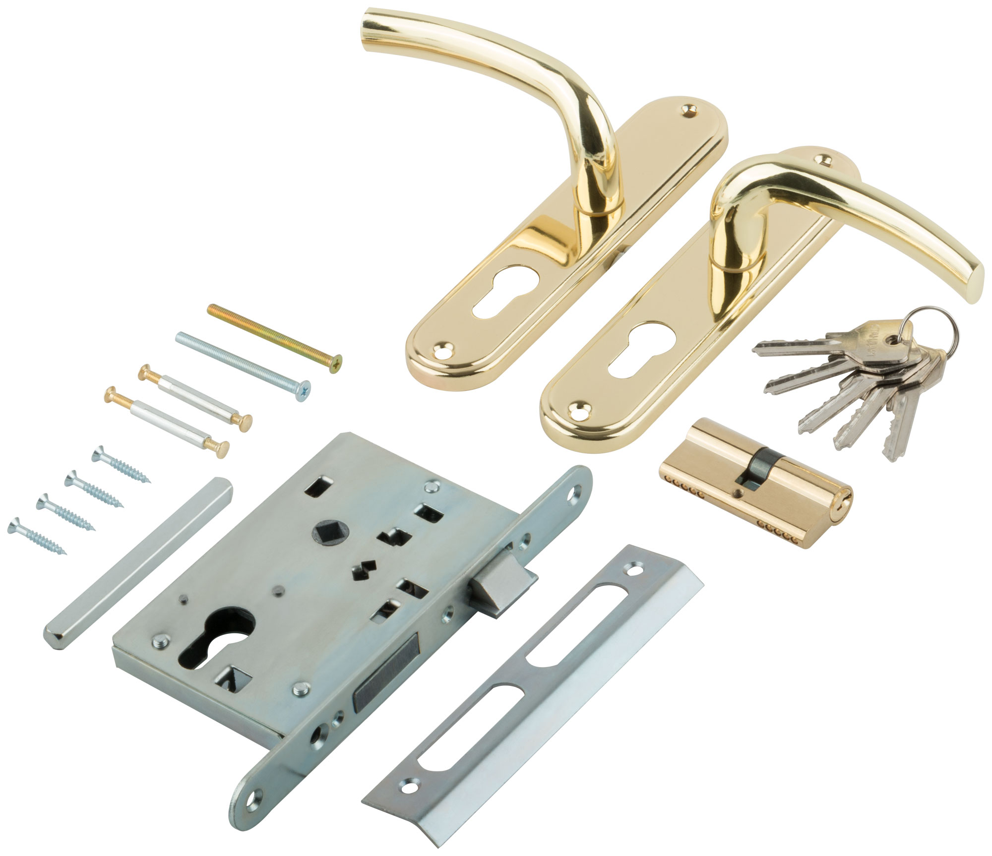 Замок врезной с ручками , цилиндровый.. Предназначен для установки в деревянные двери толщиной 40-50мм, правого и левого открывания. Стальной оцинкованный корпус. Прямоугольный ригель из цинкового сплава, вылет 22мм. Медосевое расстояние 5мм. Удаление ключевого отверстия 55мм. Габаритный размер 85х130 мм. Материал: ручек: алюминиевый сплав,гальваническое покрытие. В комплекте: ответная планка, стяжки, цилиндр 60мм,3ключа. Упаковка: картонная коробка.