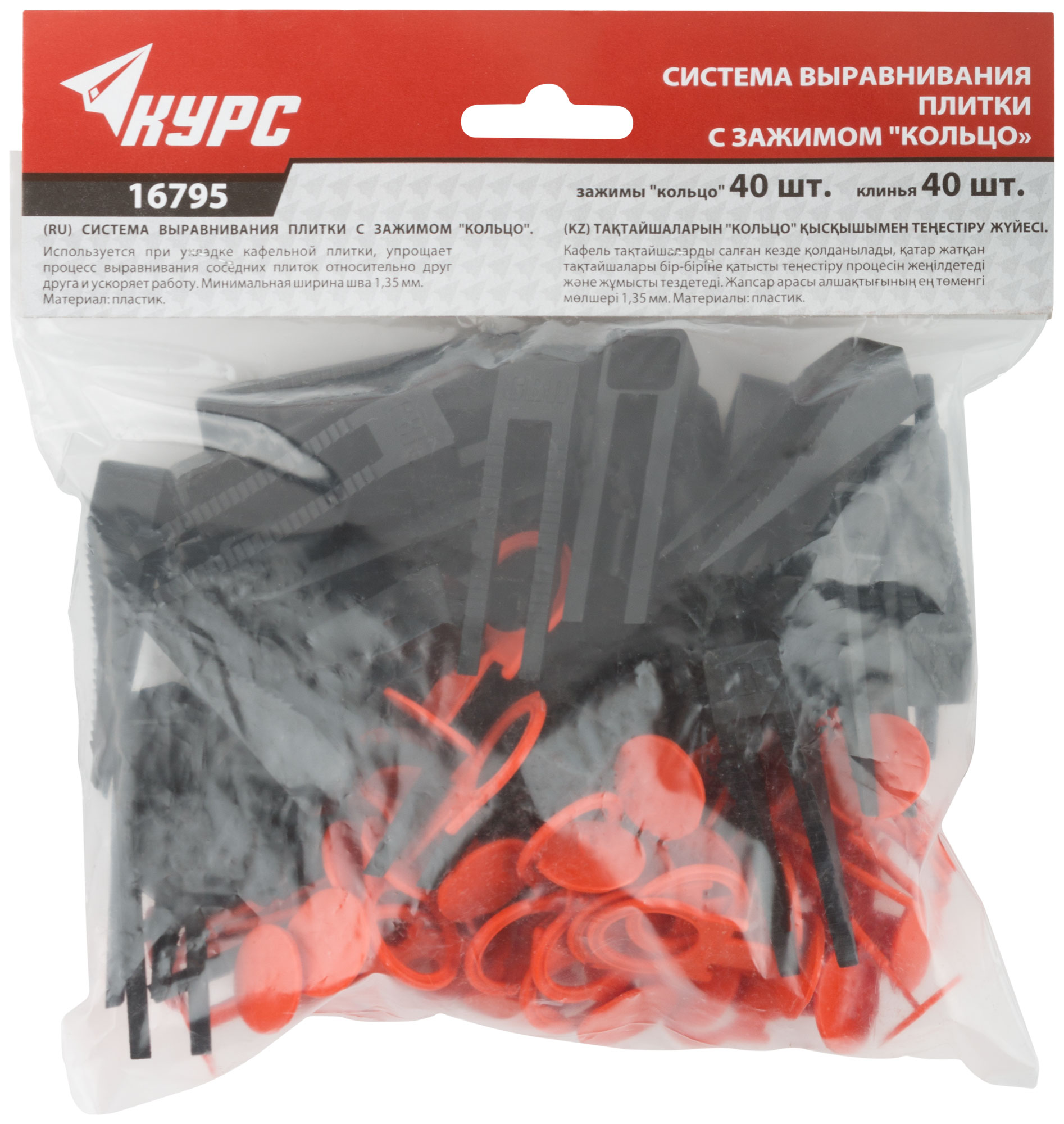 СВП ( Система Выравнивания Плитки), Зажимы "Кольцо" 40 шт. + Клинья 40 шт., набор, ширина шва 1,35 мм КУРС арт. 16795 | код 790825