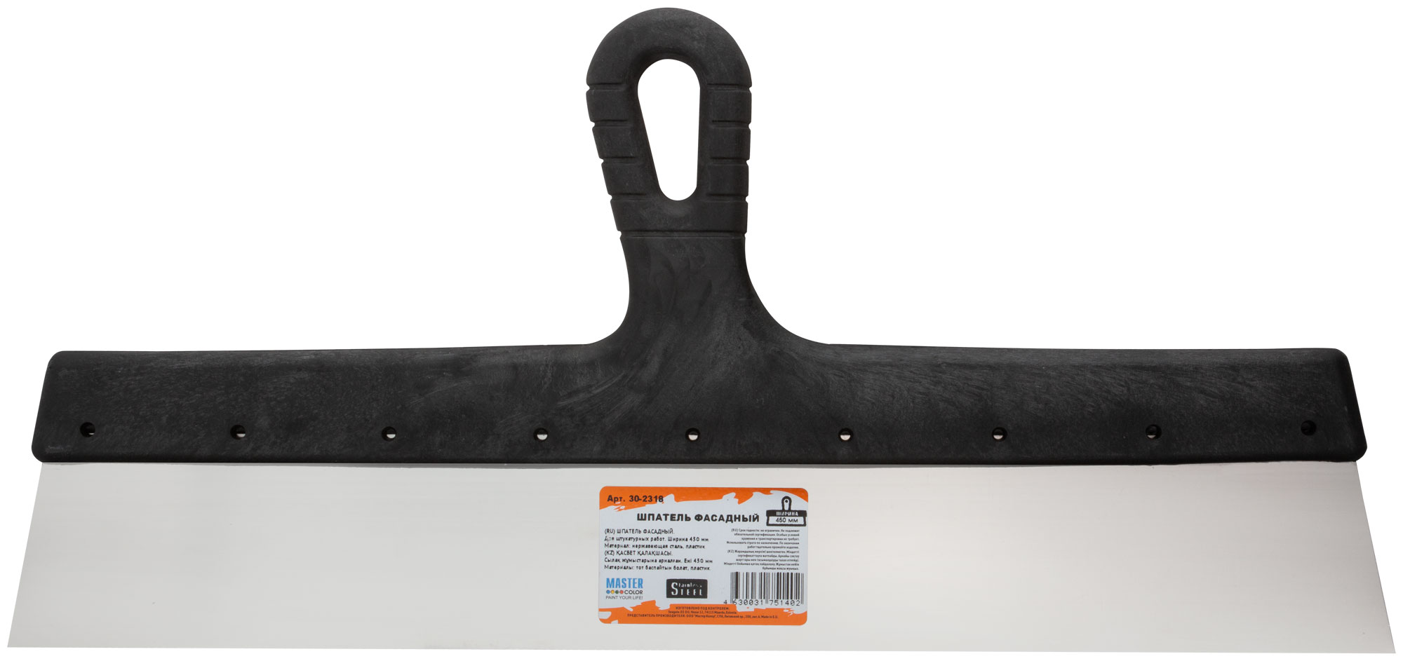 Шпатель фасадный, нержавеющиая сталь, пластиковая ручка, 450 мм MASTER COLOR арт. 30-2318 | код 790889