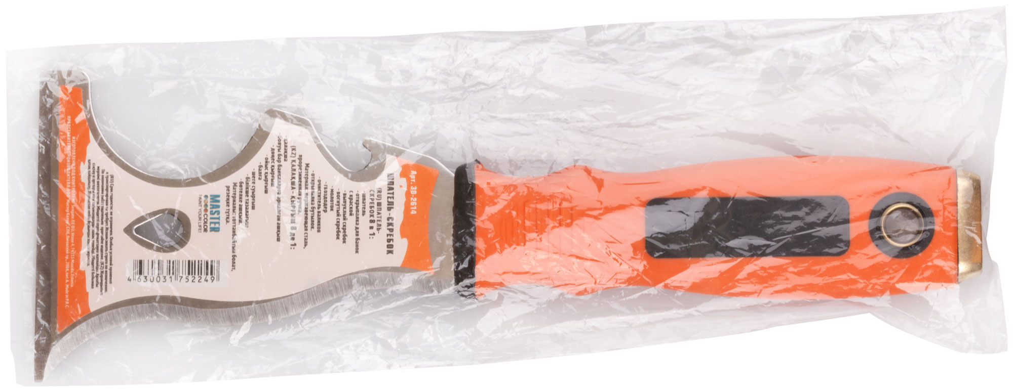 Шпатель-скребок, многофункциональный 8-в-1, нержавеющая сталь, 2К-ручка, 75 мм MASTER COLOR арт. 30-2614 | код 790897