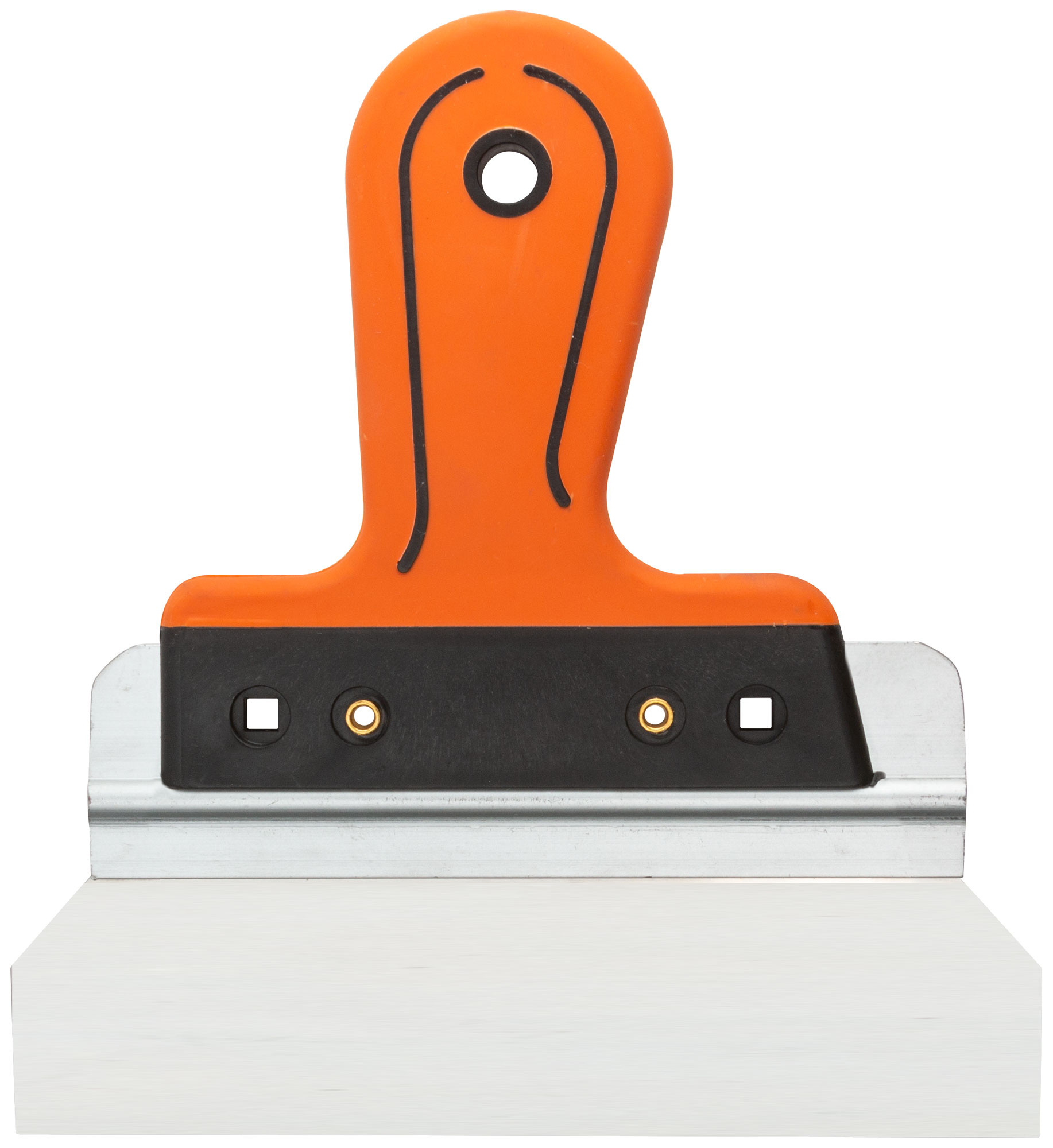 Фасадный шпатель из нержавеющей стали для штукатурных работ. Алюминиевая основа, эргономичная 2-К ручка. Материал: нержавеющая сталь, прорезиненная ручка.