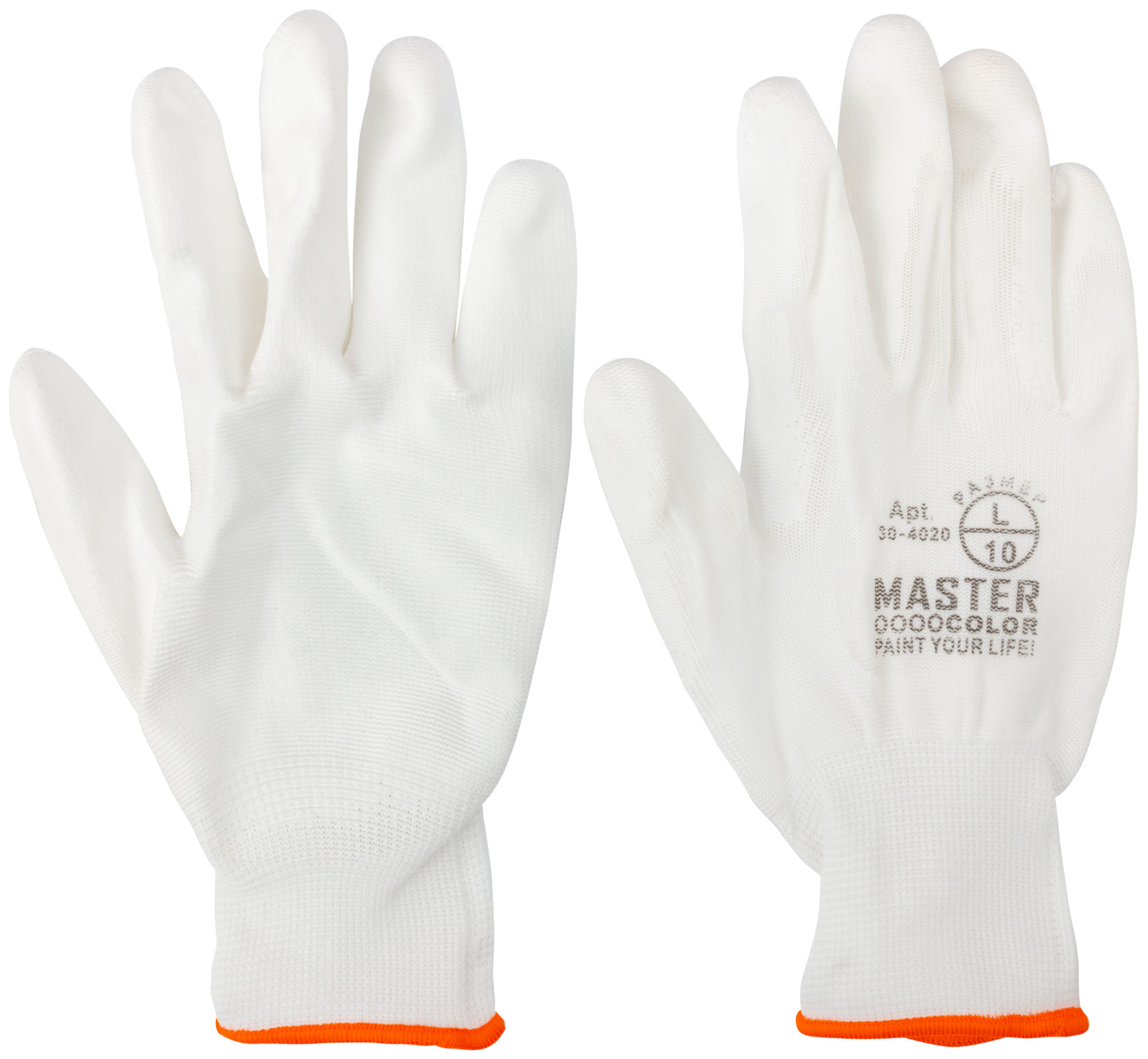 Перчатки белые, полиэстер с обливкой из полиуретана ( водоотталкивающие), р-р L/9 MASTER COLOR