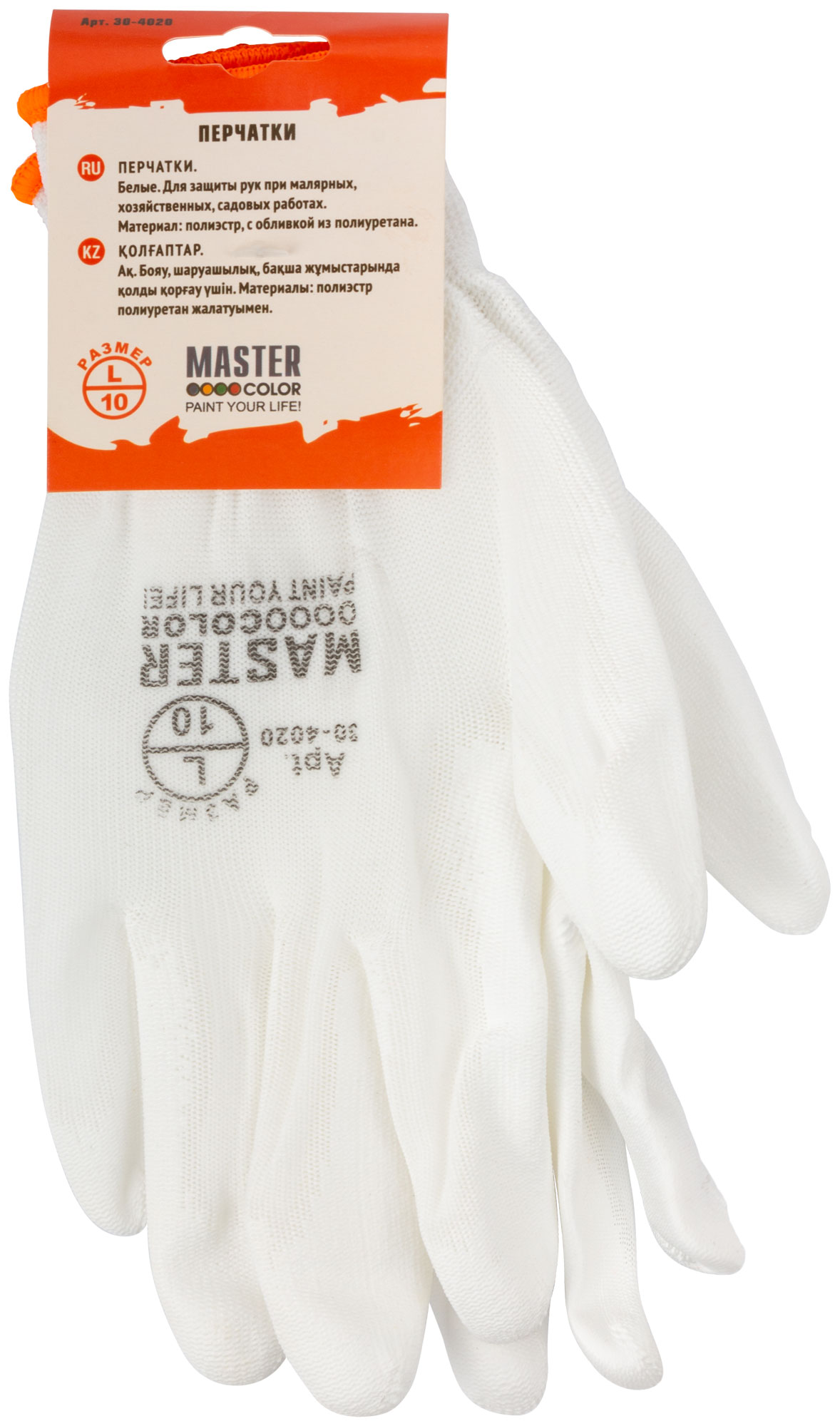 Перчатки белые, полиэстер с обливкой из полиуретана ( водоотталкивающие), р-р L/9 MASTER COLOR арт. 30-4020 | код 791115