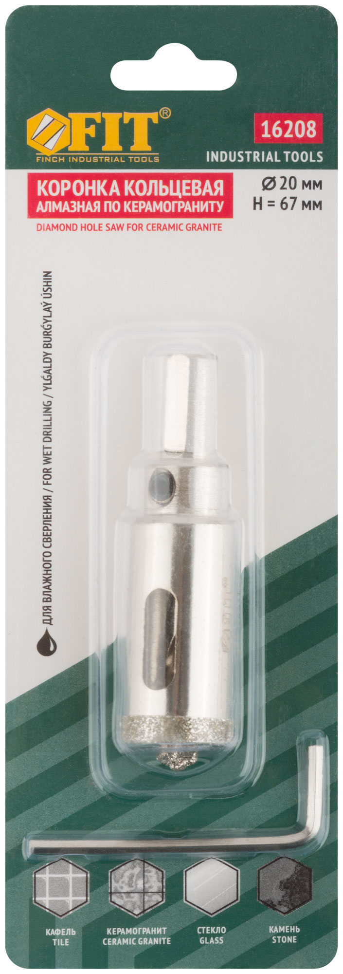 Коронка кольцевая по керамограниту, камню и кафелю алмазная с центровочным сверлом 20х70 мм FIT FINCH INDUSTRIAL TOOLS арт. 16208 | код 791217