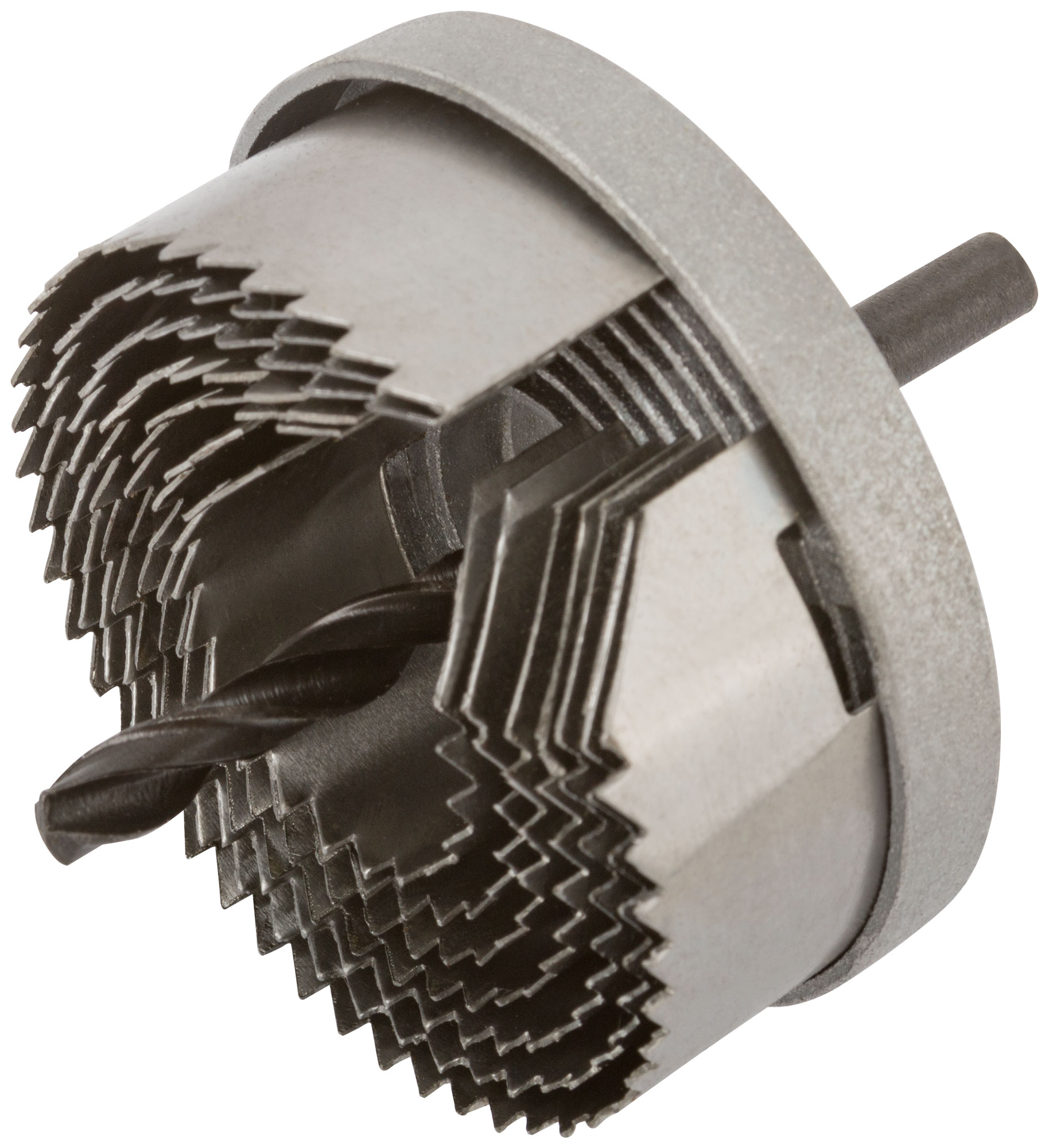 Каленый зуб. Для высверливания отверстий в древесине твердых и мягких пород, ДСП и фанере. В наборе 7 пил круговых: 26, 32, 38, 45, 50, 56, 63 мм. Материал: инструментальная сталь. Упаковка: двойной блистер.