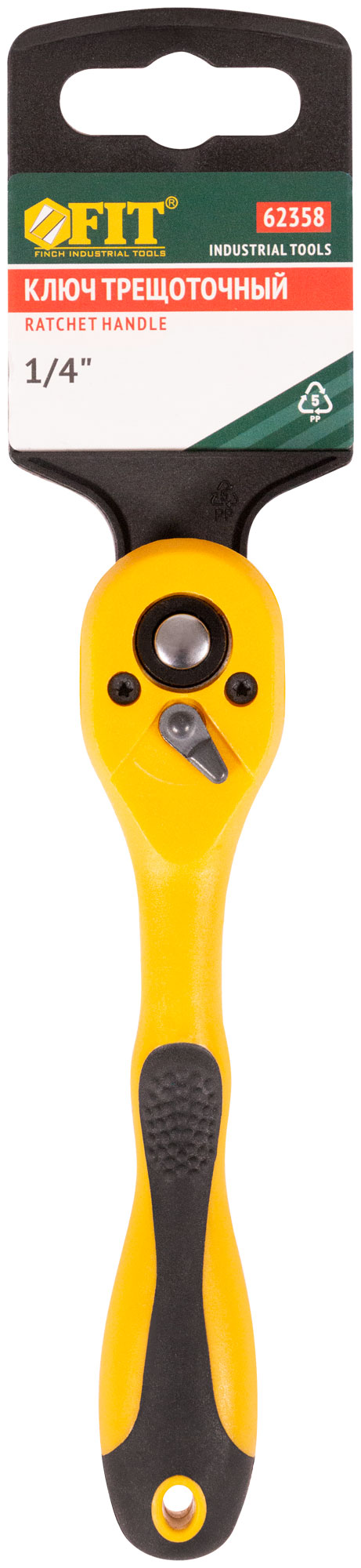 Вороток (трещотка), механизм легированная сталь 40Cr, полностью прорезиненная ручка, 1/4", 72 зубца FIT FINCH INDUSTRIAL TOOLS арт. 62358 | код 800920