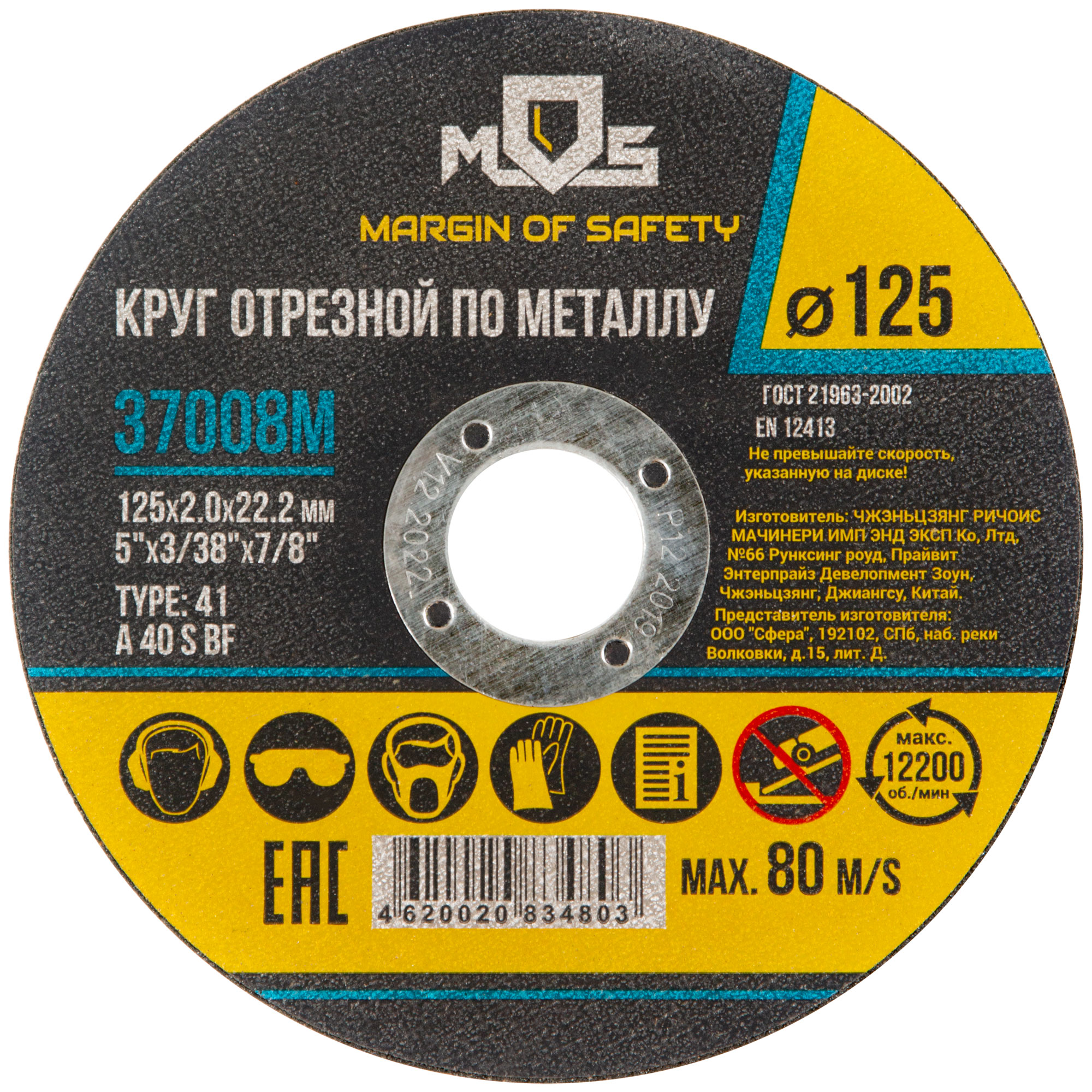 Круг отрезной по металлу MOS, посадочный диаметр 22,2 мм, 125х2,0 мм арт. 37008М | код 806309