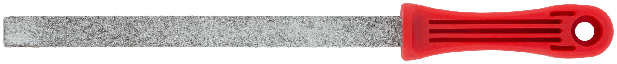 Плоский. Для работы с кафельной плиткой. Материал: стальной сердечник, карбидное напыление, пластиковая ручка.