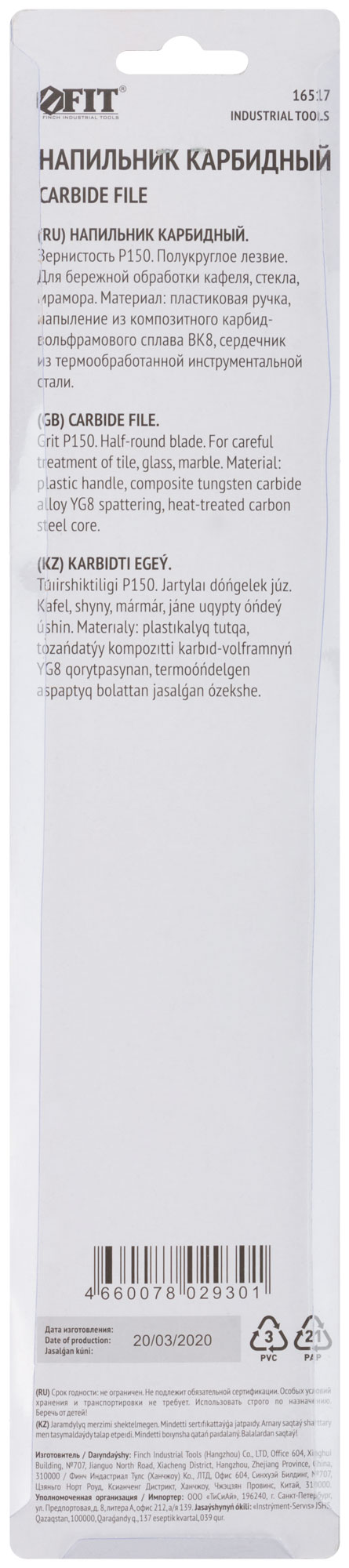 Напильник карбидный полукруглый 200 мм, Р150 FIT FINCH INDUSTRIAL TOOLS