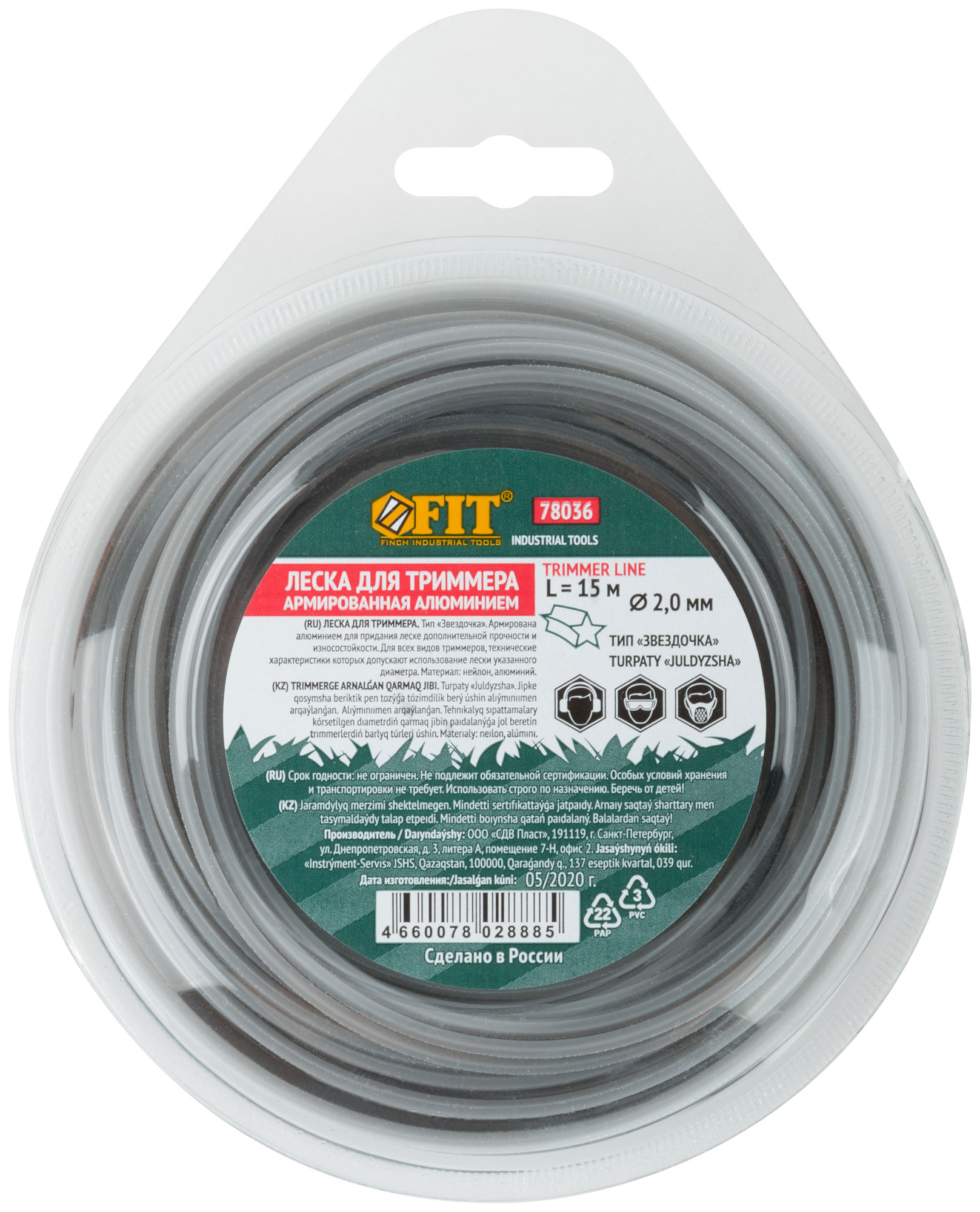 Леска для садовых триммеров армированная алюминием "Звезда" 2,0 мм х 15 м FIT FINCH INDUSTRIAL TOOLS арт. 78036 | код 818568